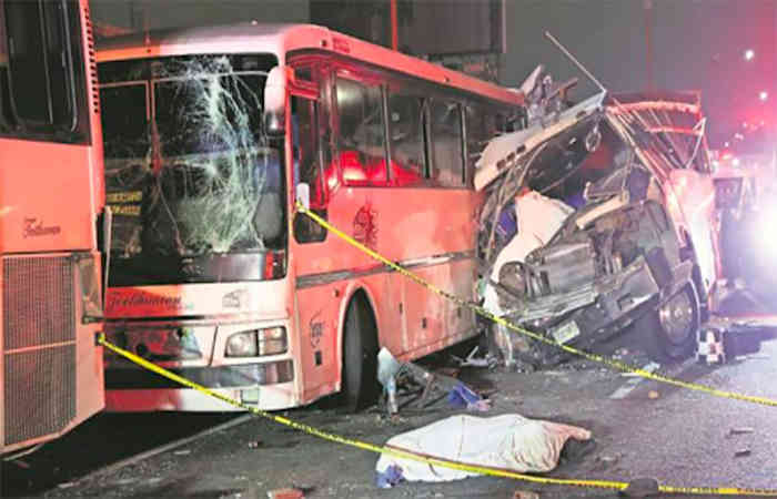 खबरों के मुताबिक, हादसे के बाद तीन साल के बच्चे समेत 11 लोगों की मौके पर ही मौत हो गई। तब से मंगलवार को दो अन्य घायलों का इलाज करते हुए मरने वालों की संख्या बढ़कर 13 हो गई है। हादसा उस समय हुआ जब एक बस सड़क के किनारे एक स्टॉप पर खड़ी दो अन्य बसों से टकरा गई।
