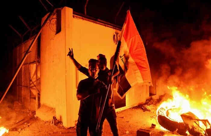 गुस्साए प्रदर्शनकारियों ने बुधवार रात दक्षिणी इराकी शहर नजफ में ईरानी वाणिज्य दूतावास में आग लगा दी।