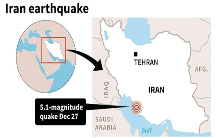 यूएस जियोलॉजिकल इंस्टीट्यूट के अनुसार, भूकंप की तीव्रता 5.1 किमी थी और इसका केंद्र जमीनी स्तर से 5 किमी ऊपर था। भूकंप का केंद्र दक्षिण पश्चिमी खाड़ी के तट पर बुशहर परमाणु ऊर्जा संयंत्र से 45 किमी पूर्व में दर्ज किया गया था।