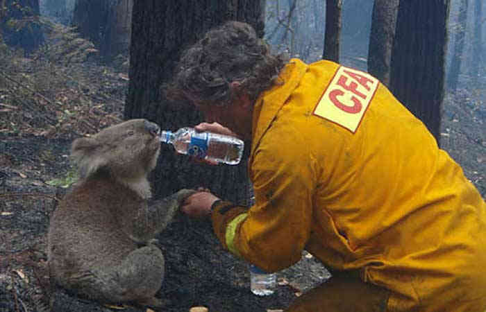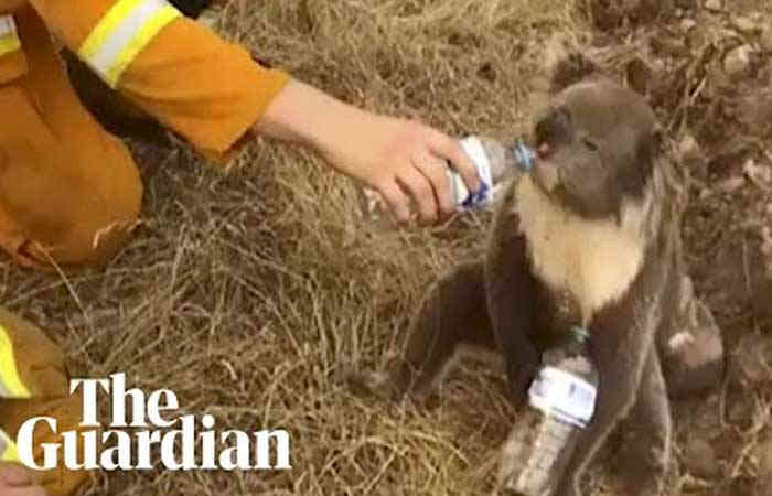 जंगल की आग ने 1,23,50,000 एकड़ को जला दिया, नौ लोगों की मौत हो गई और एक हजार से अधिक घर नष्ट हो गए। आग से पानी पीते हुए कोआला की एक तस्वीर इस समय सोशल मीडिया पर वायरल हो रही है। इसके अलावा, अपनी खुद की शर्ट के साथ एक उग्र कोअला को बचाने वाली महिला की एक तस्वीर ने भी लोगों का दिल जीत लिया।