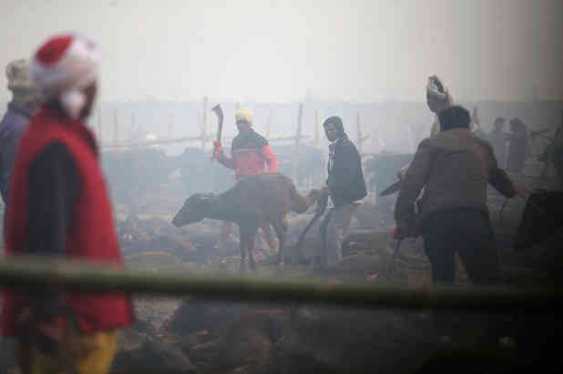 धार्मिक परंपरा के नाम पर, दुनिया में 3,000 से अधिक जानवरों का वध किया जाता है। प्राप्त जानकारी के अनुसार, त्यौहार के पहले दिन 5 हजार भैंसों का वध किया गया था। बीरपुर के इस मेले में पिछले 5 हज़ार मवेशियों की बलि दी गई थी। तीखे किनारों और तलवारों के साथ 3 से अधिक कसाई फुटबॉल मैदान में आते हैं। यहां जानवरों के साथ लाइन में लगने वाले तीर्थयात्री जानवरों को एक के बाद एक नारियल की तरह बढ़ने देते हैं। अधिकांश बकरियों और सूअरों और भैंसों की बलि दी जाती है। बलिदान के बाद, लोग मांस को खाना पकाने के लिए अपने घर ले जा सकते हैं, न कि केवल प्रसाद की तरह। मेला आयोजकों ने मेले खत्म होने के बाद मृत मांस और मृत जानवरों के शवों को दफन कर दिया।