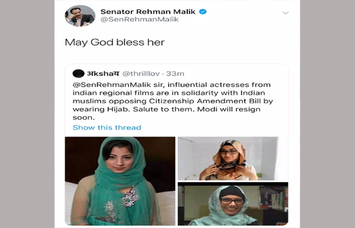 इसके जवाब में, रहमान मलिक, जो एक जांच अधिकारी हैं, जिन्होंने चित्रों को पोस्ट किया, ने लिखा, "ईश्वर उन्हें आशीर्वाद दे", ये तीन तस्वीरें अलग-अलग लड़कियों की थीं, जिनमें से दो पोर्न स्टार मिया खलीफा और नादिया अली हैं। इस पोस्ट पर यूजर्स उनका खूब मजाक उड़ा रहे हैं।