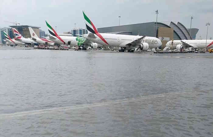 दुबई में भारी बारिश के कारण, जिसने चारों ओर बाढ़ की स्थिति पैदा कर दी, दुबई हवाई अड्डे के अंगार रनवे भी पानी से भर गया।