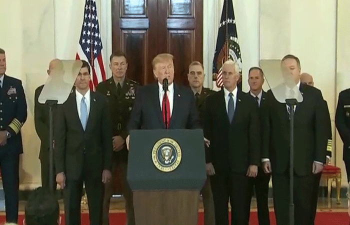 उन्होंने कहा कि चीन, रूस और ब्रिटेन को ईरान के खिलाफ अमेरिका का समर्थन करना चाहिए। ईरानी कमांडर जनरल कासिम सुलेमानी अमेरिका के खिलाफ साजिश रच रहा था। हमने बगदादी को भी मार दिया।