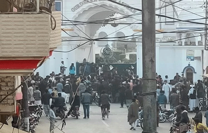 पाकिस्तान के एक दर्जन से अधिक पुलिसकर्मी गुरुद्वारे में पहुंच चुके हैं, लेकिन गौर करने वाली बात यह है कि पुलिसकर्मी भीड़ को तितर-बितर करने में नाकाम रहे।