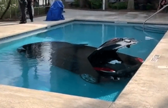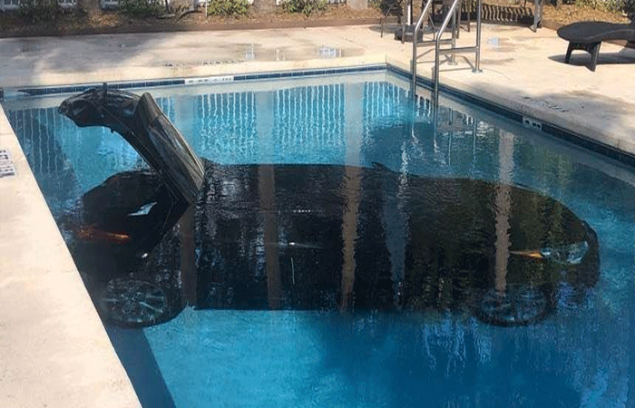 वेस्ट पाम बीच पुलिस के अनुसार, एक कार होटल की रेलिंग में घुस गई और एक कार को सीधे स्विमिंग पूल में गिरा दिया। घटना के तुरंत बाद कार का चालक फरार हो गया।