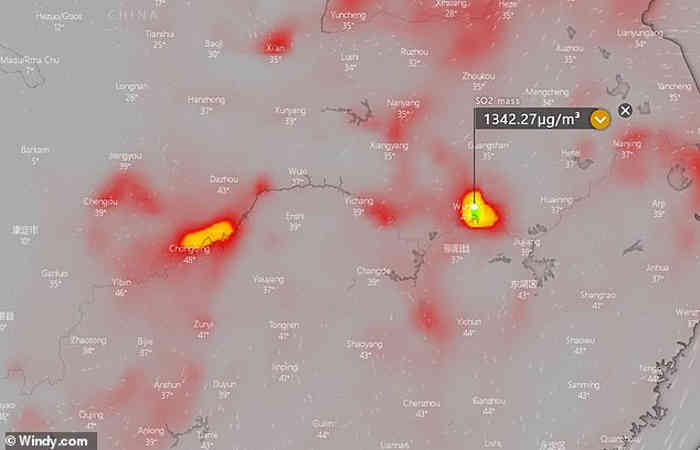 ब्रिटेन की वेबसाइट डेली मेल के मुताबिक, वुहान चीन का शहर है, जहां सबसे ज्यादा कोरोनोवायरस मरीज पाए गए हैं, जिसमें वुहान के वातावरण में सैटेलाइट इमेजरी मिली, जिसमें 1350 माइक्रोग्राम (/ g / m3) सल्फर डाइऑक्साइड था।