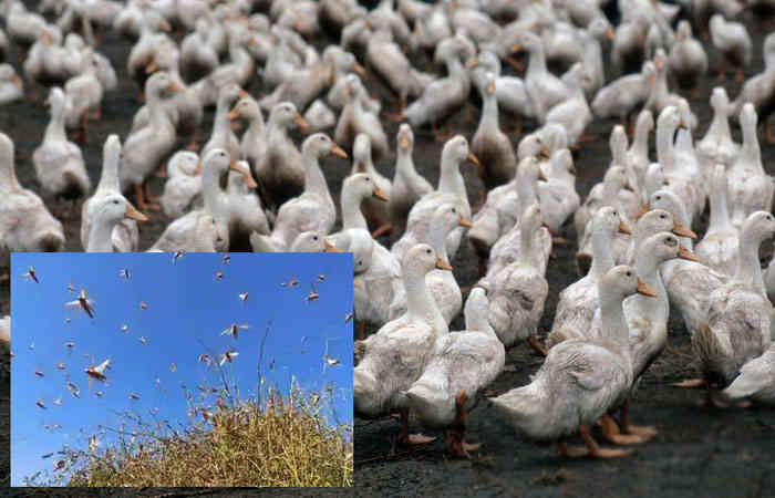 पाकिस्तान के सिंध प्रांत में टिड्डे का खरपतवार उग आया है। लगभग 40 प्रतिशत फसल टिड्डियों द्वारा नष्ट कर दी गई है। टिड्डियों के अत्याचार से पाकिस्तान को राहत देने के लिए चीन पाकिस्तान को एक मिलियन डक भेजेगा। आशा है कि ये बतख टिड्डों की खेती करके पाकिस्तानी किसानों को राहत प्रदान करेंगी।