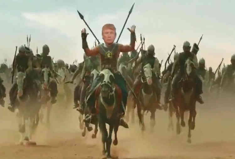 यह वीडियो बाहुबली फिल्म के एक गाने का है। जिसमें प्रभास को घुड़सवारी से लेकर दुश्मनों की रणभूमि तक लड़ते हुए दिखाया गया है। ट्रम्प का चेहरा अपनी जगह पर रखने के बाद वीडियो वायरल हुआ और ट्रम्प को यह वीडियो भी पसंद आया है।