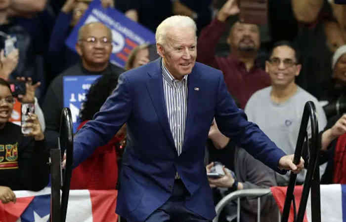 जॉय बिडेन, प्राइमरी में अमेरिकी राष्ट्रपति पद के उम्मीदवार के लिए डेमोक्रेटिक उम्मीदवार, राष्ट्रपति पद के लिए अपने दावे में दृढ़ थे।