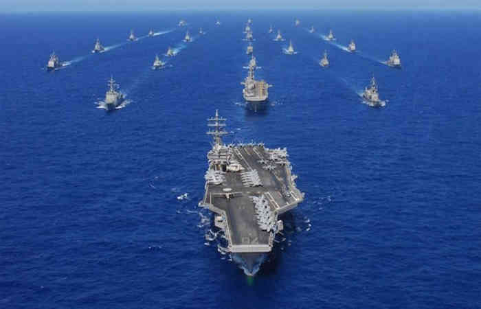 प्रशांत महासागर में अमेरिकी युद्धपोत अभ्यास कर रहे हैं। उनकी तस्वीर को यूएस पैसिफिक फ्लीट ने ट्वीट किया था। इस सैन्य अभ्यास में यूएसएस प्रिंसटन, यूएसएस राल्फ जॉनसन और यूएसएस टेरेट शामिल हैं।