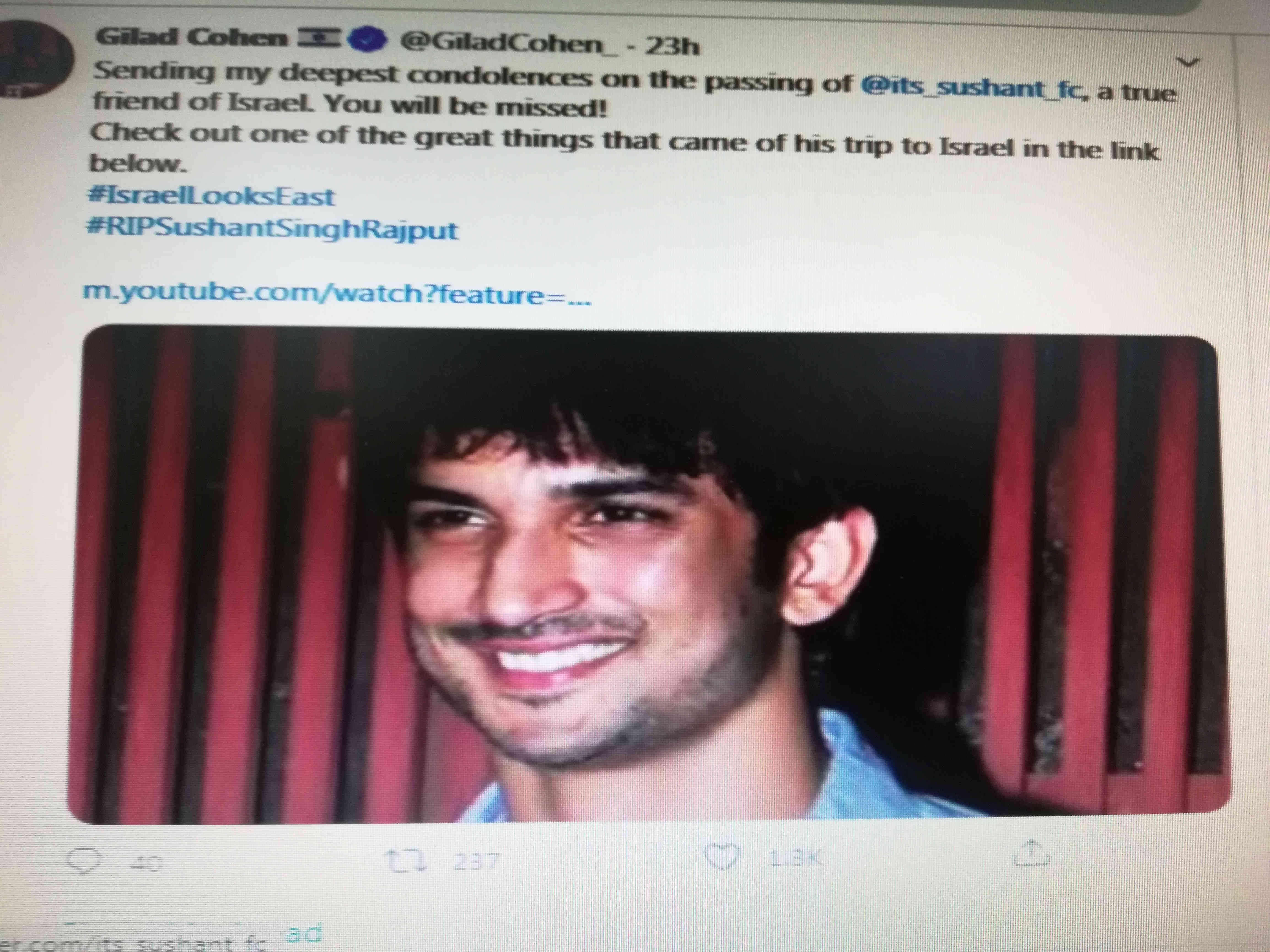 इजरायल के विदेश मंत्रालय के डिप्टी डायरेक्टर जनरल, गिलाद कोहेन ने मंगलवार को ट्वीट कर सुशांत की अचानक मौत पर शोक व्यक्त किया। शोक संदेश में, सुशांत ने उन्हें इजरायल का सच्चा दोस्त बताते हुए गहरी संवेदना व्यक्त की। सुशांत की फिल्म ड्राइव से मखना गीत का लिंक भी साझा किया। ट्वीट में, आपने बहुत सारी यादें भी लिखीं। अपने सह-कलाकार जैकलीन फर्नांडीज पर सुशांत के साथ फिल्माया गया यह गाना इजरायल में शूट किया गया था।