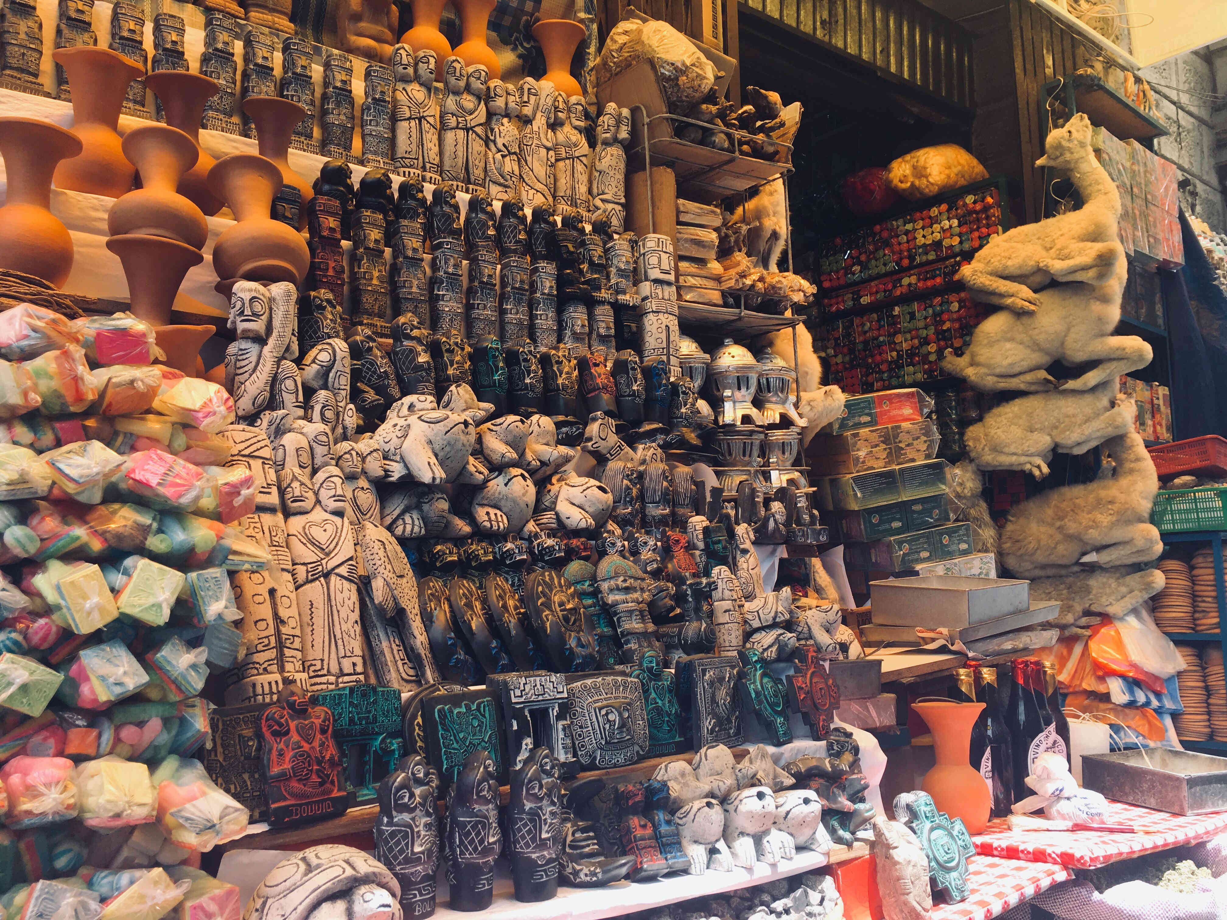 इस बाजार में आप जानवरों के सिर, सूखे टॉरोस, सूखे मेंढक, विभिन्न जानवरों के शरीर से निकाले गए आँखें, पुराने शराब, उल्लू और विभिन्न प्रकार के ताबीज और ताबीज पा सकते हैं। केवल एक चीज जो जादू और टोना के लिए इस्तेमाल की जा सकती है वह इस बाजार में पाई जाती है। खुले हवा के बाजार में जीवन में कभी काम नहीं करने वाली अजीब चीजों के गुणों को इस तरह से समझाया गया है कि लोग खरीदने के लिए ललचाते हैं। हैरानी की बात है कि पेरू सरकार कुशको शहर में पर्यटकों के आकर्षण के बीच इस विदेशी चुड़ैल बाजार का उल्लेख करती है। चुड़ैल बाजार में दुकानदार रंगीन कपड़े पहने हैं। कुछ महिलाएं गोल टोपी पहने, चुड़ैलों की तरह कपड़े पहने काउंटर पर बैठी देखी जाती हैं।