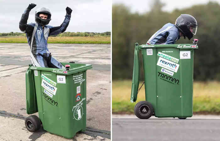 एंडी जेनिंग्स 28 साल के हैं और इंग्लैंड के एलविंगटन में रहते हैं। उसने अपने घर पर पड़े कचरे के डस्टबिन के अंदर मोटरसाइकिल का इंजन फिट कर दिया। इतना ही नहीं, बल्कि इस रनिंग डस्टबिन की वजह से एंडी ने एक स्पीड रिकॉर्ड भी बनाया। दुनिया के सबसे तेज कूड़ेदान का पिछला रिकॉर्ड 30 किलोमीटर प्रति घंटा था। हालांकि एंडी ने इस रिकॉर्ड को तोड़ दिया है। उन्होंने 40 किलोमीटर प्रति घंटे से अधिक की गति हासिल की। अधिक वायु दबाव के बावजूद एक रिकॉर्ड स्थापित करें