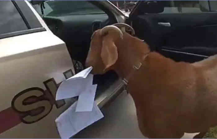 घटना अमेरिका के जॉर्जिया की है। डगलस काउंटी शेरिफ पुलिस स्टेशन के अधिकारी कागजी कार्रवाई के लिए गए थे। उसने कार को सड़क पर पार्क किया और एक घर के अंदर चला गया। कार का दरवाजा खुला था। जब वे वापस लौटे तो एक बकरी ने कार के अंदर कागज खाया। उसने आकर बकरी के साथ भागने की कोशिश की लेकिन यह दूर नहीं हुआ। काफी प्रयास के बाद बकरी गाड़ी से बाहर निकली।