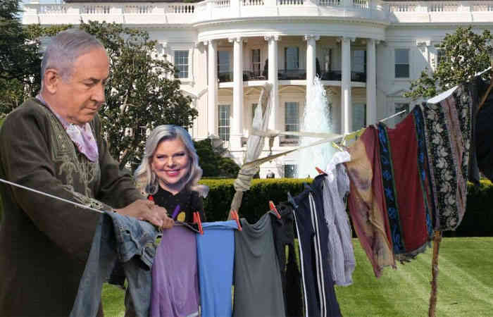 व्हाइट हाउस के कर्मचारियों ने कहा: "जब इजरायल के प्रधान मंत्री बेंजामिन नेतन्याहू संयुक्त राज्य अमेरिका की यात्रा पर पहुंचे, तो वह अपने साथ गंदे कपड़ों का ढेर लेकर आए।" व्हाइट हाउस के कर्मचारियों द्वारा कपड़े धोए गए थे।