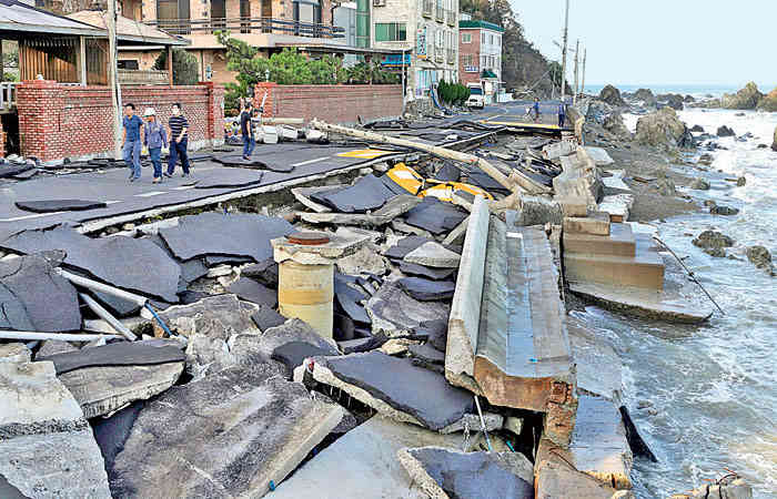 दक्षिण कोरिया में 100 से अधिक घर क्षतिग्रस्त हो गए हैं। बवंडर ने 5,000 से अधिक घरों में बिजली की आपूर्ति बाधित कर दी है। अधिकारियों ने लगभग एक हजार लोगों को पहले ही निकाल लिया। 300 से अधिक उड़ानें रद्द कर दी गई हैं।