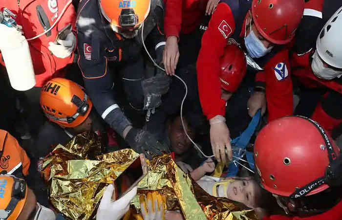 तुर्की के इज़मिर शहर में एक विनाशकारी भूकंप के बचे लोगों तक पहुंचने की उम्मीद के रूप में बचाव कर्मियों द्वारा एक ढह गई इमारत के मलबे से चार दिन बाद एक तीन वर्षीय लड़की को बचाया गया।