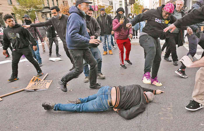 घटना में दो पुलिसकर्मी भी घायल हो गए। इतनी बड़ी पुलिस उपस्थिति के बावजूद, दोनों समूह घंटों तक भिड़ गए। ट्रंप समर्थकों ने रैली की और उन पर अमेरिकी चुनाव में धांधली का आरोप लगाया और जांच की मांग की।