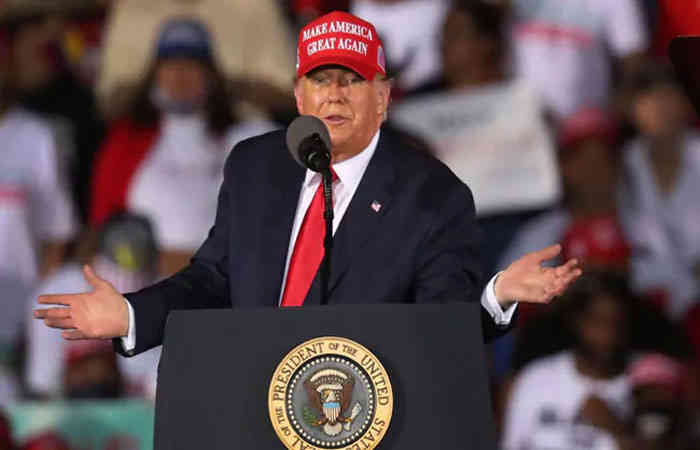 ट्रम्प ने रविवार को एक चुनावी रैली में कहा कि संयुक्त राज्य अमेरिका अपनी आर्थिक सुधार की राह पर था और अच्छा प्रदर्शन कर रहा था, लेकिन चीन के वायरस की चपेट में आ गया। रहने भी दो।