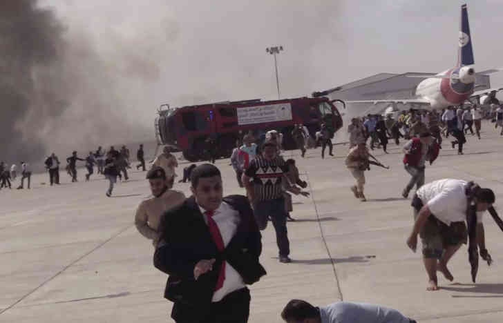 हवाई अड्डे पर मौजूद लोगों के अनुसार, जैसे ही विमान उतरा, एक बड़ा विस्फोट हुआ और फिर गोलियों की आवाज आई। यमनी प्रधान मंत्री मुख्य अब्दुल मलिक भी विमान के अंदर कैबिनेट सदस्यों के साथ दिखाई दिए। सभी लोग सुरक्षित बाहर निकलने में सफल हो गए। प्रधानमंत्री मेन ने भी ट्वीट किया कि सभी लोग सुरक्षित बाहर हैं।