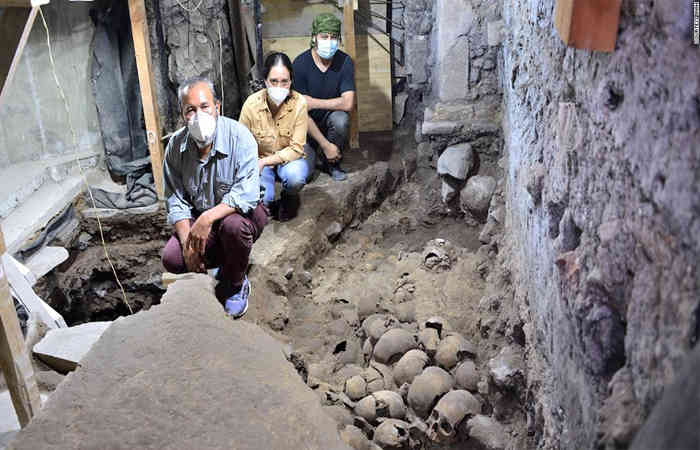 मैक्सिकन राजधानी, न्यू मैक्सिको में खुदाई के दौरान मानव खोपड़ी का एक बड़ा ढेर मिला है। ऐसा कहा जाता है कि ये खोपड़ियां एज़्टेक साम्राज्य के 500 साल पुराने युग की हैं। शोधकर्ताओं के अनुसार, एज़्टेक साम्राज्य में एक विशाल टॉवर बनाने के लिए इन लोगों की बलि दी गई थी। पूरी दुनिया में इस खोज को बहुत महत्व दिया जा रहा है। दुनिया भर के कई प्रसिद्ध पुरातत्वविद् इस खोज को देखने के लिए मेक्सिको घूम रहे हैं।