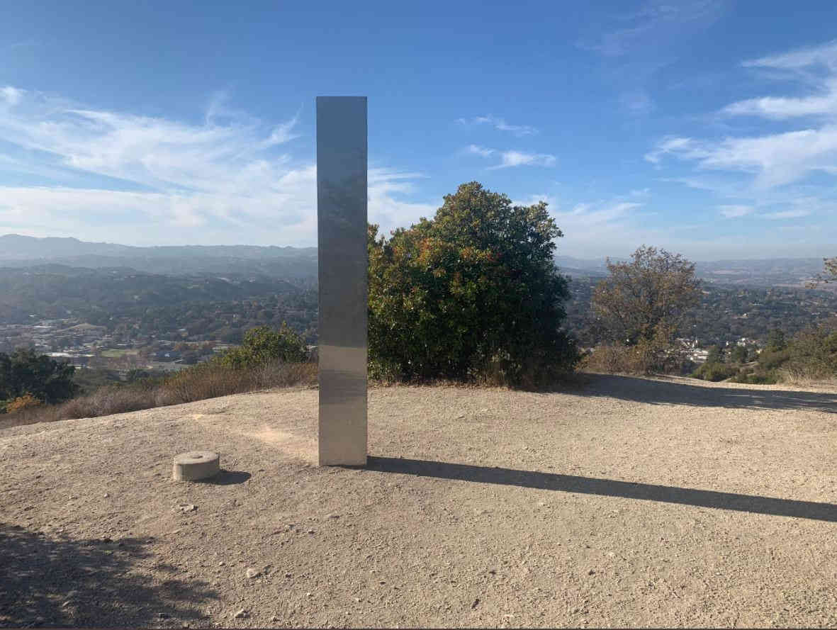 स्थानीय मीडिया ने बताया कि कैलिफोर्निया में माउंट पाइन पर 10 फुट लंबा और 18 इंच चौड़ा धातु का खंभा स्थित था। स्तंभ के तीनों ओर देखने पर यह दूर से भी चमकने लगता था क्योंकि यह स्टील धातु से बना था। स्तंभ के तीन कोनों को इंगित किया गया है और इसे जमीन में नहीं खोदा गया है, लेकिन केवल सतह पर देखा जा सकता है। ऐसी जानकारी सोशल मीडिया पर वायरल हुई। सोशल मीडिया पर अजायब थभाला की विशेषताओं को जानने के लिए पर्यटकों का तांता लगा रहा। यूटा, रोमानिया के बाद, अब कैलिफोर्निया में एक स्तंभ, कुछ लोगों का मानना था कि यह एक विदेशी करतब था।
