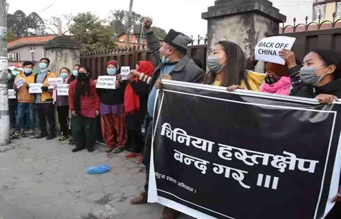 नेपाल में चीन के बढ़ते हस्तक्षेप से नाराज लोगों ने सोमवार को काठमांडू में सड़क पर प्रदर्शन किया। प्रदर्शनकारियों ने चीन के खिलाफ नारे लगाए। प्रदर्शनकारियों ने चीन विरोधी पोस्टर और बैनर लगाए। पोस्टरों ने नेपाल में चीनी हस्तक्षेप को समाप्त करने का आह्वान किया।