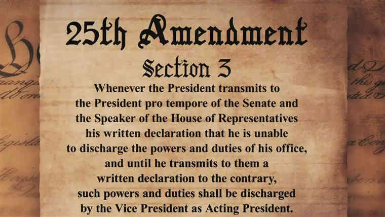 25 वें संशोधन के अनुच्छेद 4 में यह प्रावधान है कि यदि राष्ट्रपति अपनी जिम्मेदारियों का हस्तांतरण या निर्वहन करने में विफल रहता है, तो उसे राष्ट्रपति पद से हटाया जा सकता है। अभी तक इस क्लॉज का इस्तेमाल कभी नहीं किया गया। लेकिन अब ऐसा लगता है कि इस क्लॉज का उपयोग करने से, शायद ट्रम्प को उनके कार्यकाल की समाप्ति से पहले हटा दिया जाएगा।