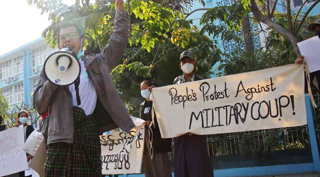म्यांमार में सैन्य तख्तापलट का कड़ा विरोध हुआ है। नेताओं की रिहाई की मांग को लेकर लोगों ने सड़कों पर उतरकर प्रदर्शन किया। भारी विरोध के बीच सेना के शासन द्वारा मोबाइल नेटवर्क पर प्रतिबंध लगा दिया गया। ब्रॉडबैंड सेवा भी बाधित होने की सूचना थी।