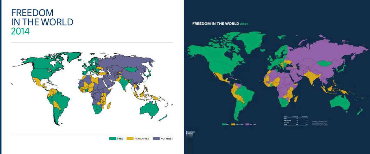 फ्रीडम हाउस रैंकिंग में, भारत पहले 'आज़ाद' श्रेणी में था, लेकिन अब भारत की रैंकिंग 'आंशिक आज़ाद' में बदल दी गई है। संगठन ने ocracy डेमोक्रेसी अंडर सीज ’शीर्षक से अपनी रिपोर्ट में कहा है कि 2014 में नरेंद्र मोदी सरकार के सत्ता में आने के बाद से भारत में नागरिक स्वतंत्रता में गिरावट आ रही है। हालांकि, रिपोर्ट में कहा गया है कि स्थिति में यह बदलाव वैश्विक परिवर्तन का एक हिस्सा है। रिपोर्ट के अनुसार, देशद्रोह के मामलों में वृद्धि, मुसलमानों पर हमले और लॉकडाउन के दौरान लगाए गए प्रतिबंध रैंकिंग को कम करने के मुख्य कारक थे। रिपोर्ट पर भारत सरकार ने अभी तक कोई टिप्पणी नहीं की है।