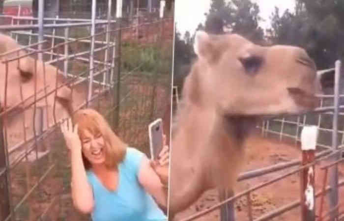 - ऊंट ने घास के रूप में महिला के बाल खाना शुरू कर दिया!