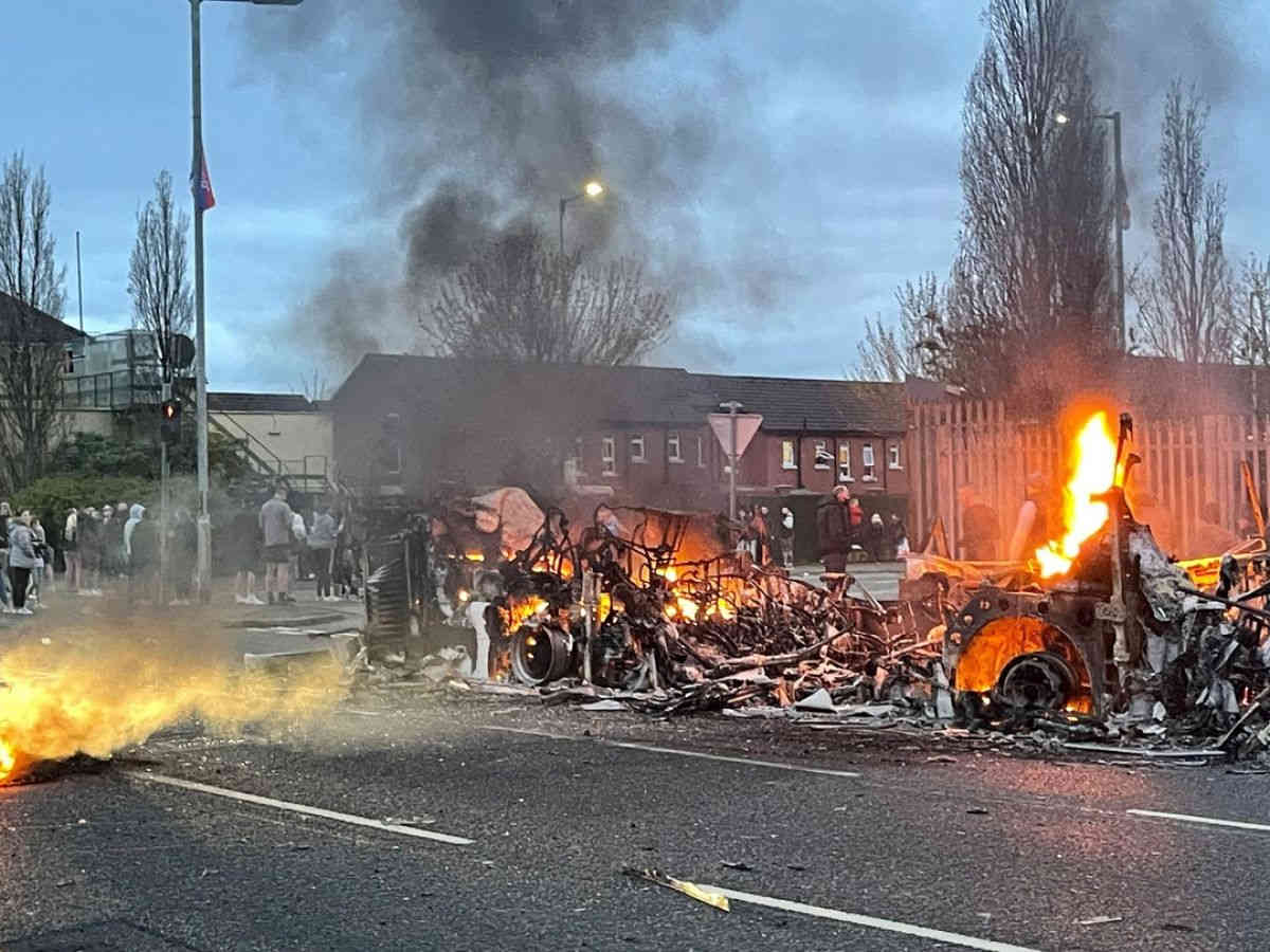 उत्तरी आयरलैंड के बेलफास्ट में लगातार छठे दिन हिंसा भड़की। प्रदर्शनकारियों ने एक बस को हाईजैक कर लिया और फिर उसमें आग लगा दी। घटना में बस चालक के अलावा एक पत्रकार घायल हो गया।