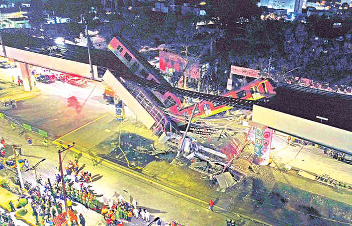 मेक्सिको सिटी: मैक्सिको की राजधानी मेक्सिको सिटी में एक मेट्रो ट्रेन की चपेट में आने से कम से कम चार लोगों की मौत हो गई। ओवरपास पुल ढहने से ट्रेन के डिब्बे हवा में लटक गए। दुर्घटना में चालीस लोग घायल भी हुए हैं। इनमें से कुछ की हालत गंभीर बताई जा रही है।
