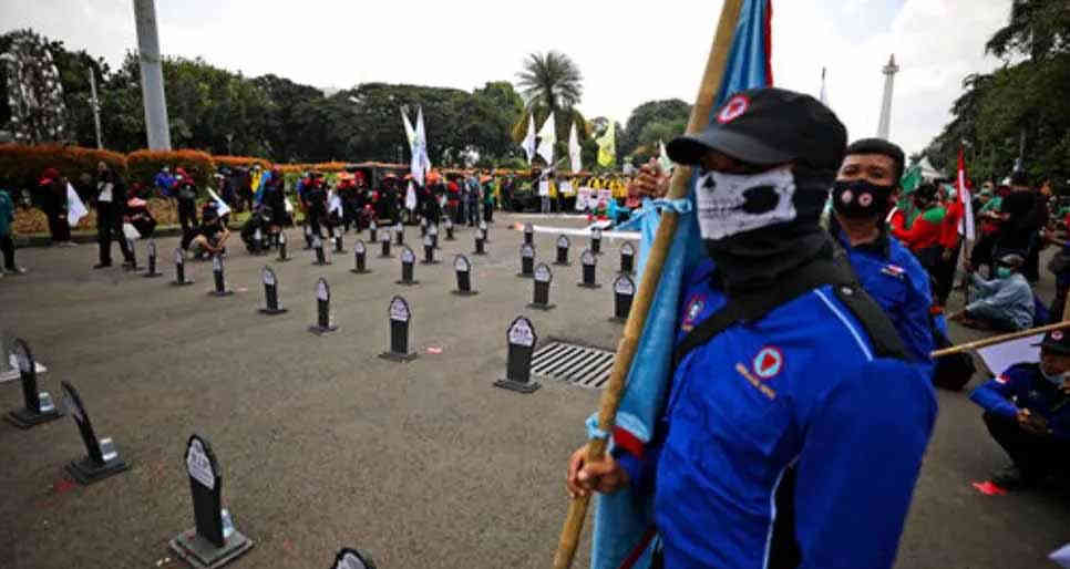 इंडोनेशिया में एक नए श्रम कानून के विरोध में कई श्रमिकों ने विश्व श्रम दिवस के विरोध में रैली निकाली। कार्यकर्ता 200 शहरों में इकट्ठा हुए, बड़े और छोटे, और मंचन किए।