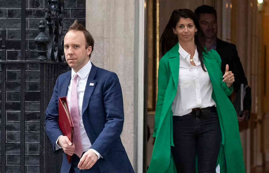 ब्रिटिश अखबार 'द सन' ने हैनकॉक और स्वास्थ्य विभाग की सलाहकार जीना कोलाडेनजेलो के साथ हैनकॉक के संबंधों का खुलासा किया। Hancock, तीन में से एक कैबिनेट मंत्री और पिता, 6 मई को Koladengelo, तीन में से एक माँ चुंबन सीसीटीवी फुटेज पर पकड़ा गया था, स्वास्थ्य विभाग के कार्यालय में। अखबार में फोटो छपने के बाद हैनकॉक ने कहा, 'मौजूदा हालात में मैं मानता हूं कि कोरोना ने सामाजिक दूरी के नियमों का उल्लंघन किया है और इसके लिए मैं माफी मांगता हूं. उनकी माफी को स्वीकार करते हुए, प्रधान मंत्री बोरिस जोन्स ने उन्हें मंत्रालय से हटाने की विपक्ष की मांग को खारिज कर दिया।