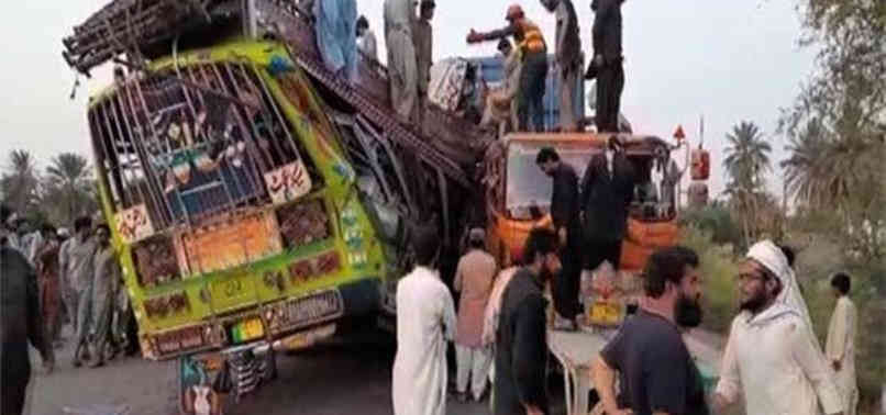 पाकिस्तान के पंजाब प्रांत में एक बस और ट्रक की टक्कर में कम से कम 30 यात्रियों की मौत हो गई और 40 से अधिक घायल हो गए। घायलों में 4 की हालत गंभीर है और मरने वालों में महिलाएं और बच्चे भी शामिल हैं। हादसा मुजफ्फरगढ़ में डेरा गाजी खान के पास तनुसा रोड पर हुआ और मरने वालों की संख्या और बढ़ने की आशंका है.