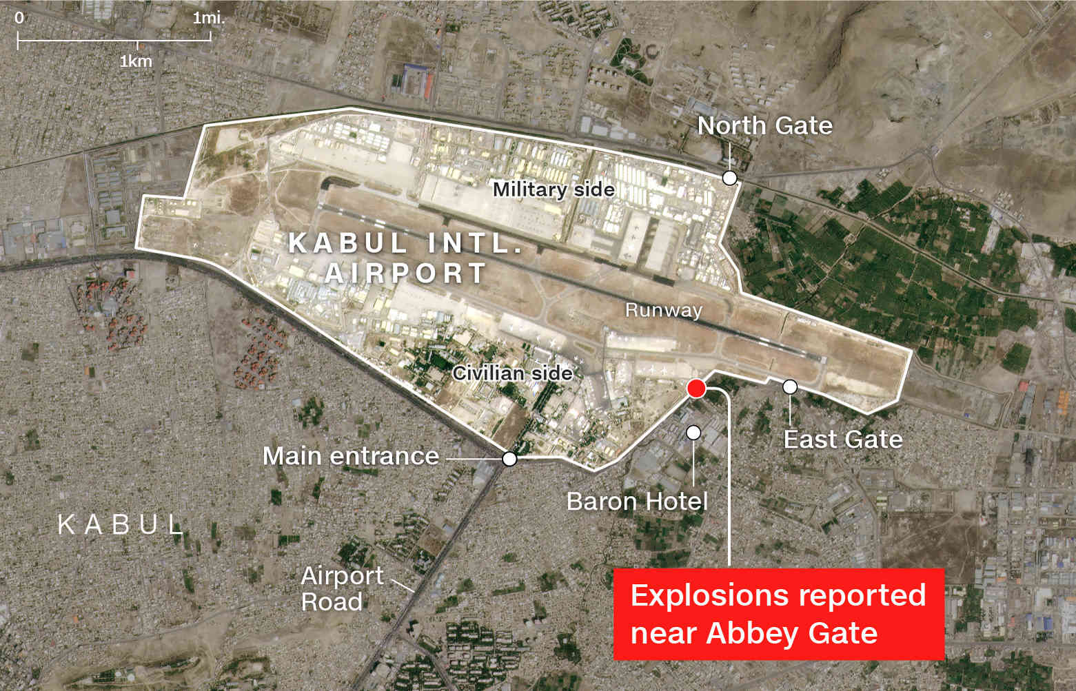 संयुक्त राज्य अमेरिका, ब्रिटेन और भारत सहित दुनिया भर के कई देश युद्धग्रस्त अफगानिस्तान से अपने नागरिकों सहित हजारों लोगों को काबुल हवाई अड्डे तक एयरलिफ्ट करने के लिए अभियान चला रहे हैं, और हजारों अफगानी देश से भागने के लिए काबुल हवाई अड्डे के बाहर एकत्र हुए हैं। तालिबान शासन का डर आतंकवादी हमले की चेतावनी दी। अमेरिकी चेतावनी गुरुवार रात सच हो गई।