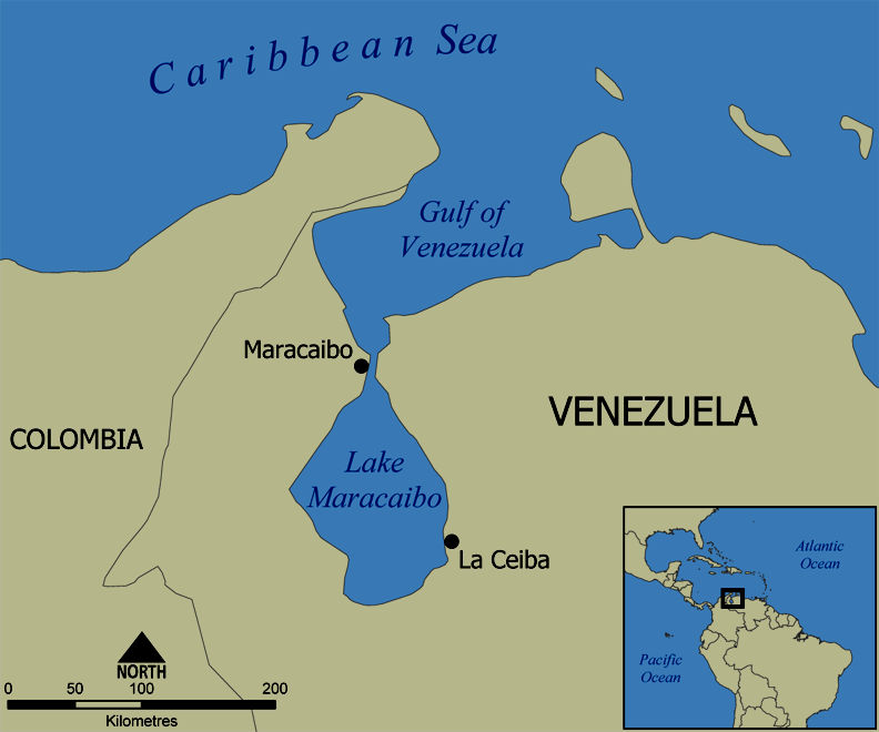 वेनेज़ुएला के उत्तर पश्चिम में स्थित माराकैबो झील कैरेबियन सागर में पाई जाती है। भौगोलिक रूप से, यह एंडीज पर्वत श्रृंखला से तीन तरफ से घिरा हुआ है। दिन के समय झील का पानी धूप में वाष्पित हो जाता है।