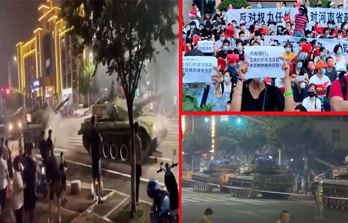 चीन की अर्थव्यवस्था उस मुकाम पर पहुंच गई है जहां वह कभी भी गिर सकती है। चीन की बैंकिंग प्रणाली की स्थिति इतनी दयनीय है कि सरकार को हेनान प्रांत में बैंक ऑफ चाइना शाखा की सुरक्षा के लिए सड़कों पर टैंक लगाने पड़े हैं। बैंक ने लोगों का पैसा लौटाने से इनकार कर दिया है. इसी को लेकर पिछले कई हफ्तों से पुलिस और लोगों के बीच झड़प हो रही है.