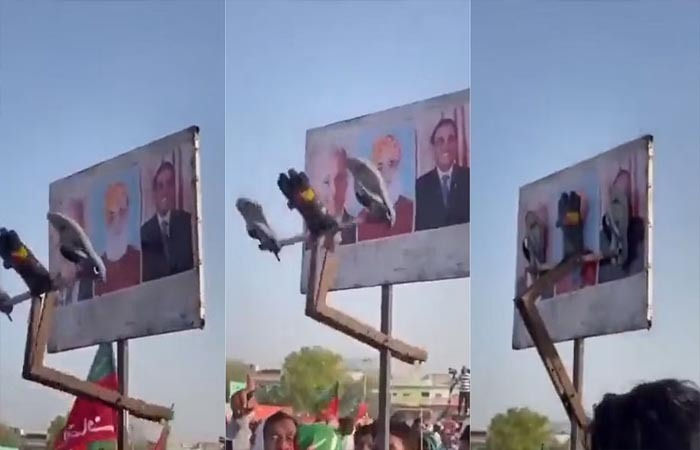वायरल वीडियो में एक प्रदर्शनकारी को मशीन के हैंडल को खींचते हुए और अपने जूतों से तस्वीरों को मारते हुए देखा जा सकता है।