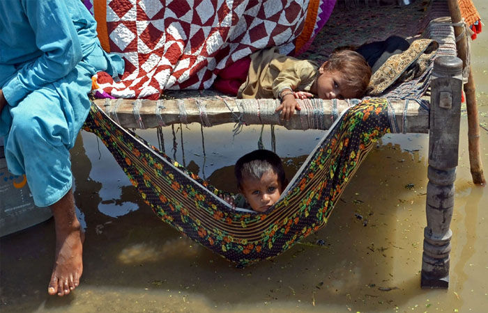 सामान्य से 10 गुना अधिक बारिश से आर्थिक रूप से दयनीय पाकिस्तान बर्बादी के कगार पर है। बाढ़ का पानी फिर से बढ़ने से अब तक 1,350 लोगों की मौत हो चुकी है और लाखों लोग बेघर हो गए हैं।