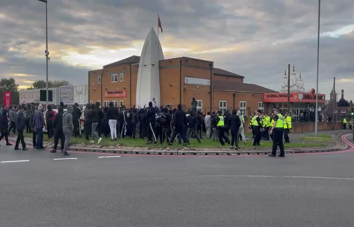 इंग्लैंड के वेस्ट मिडलैंड्स के स्मेथविक में एक हिंदू मंदिर के बाहर मुस्लिम समुदाय के 200 से अधिक लोगों ने मंगलवार को नारेबाजी की। इस घटना के कई वीडियो सोशल मीडिया पर भी वायरल हो रहे हैं, जिसमें कई लोग 'अल्लाह हू अकबर' के नारे लगाते नजर आ रहे हैं.