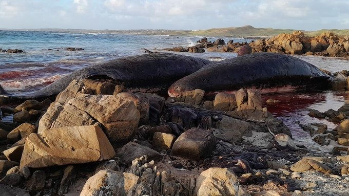 इस हफ्ते की शुरुआत में तस्मानिया के एक सुदूर समुद्र तट पर 14 स्पर्म व्हेल मृत पाई गईं।
