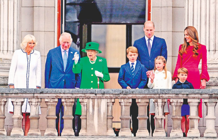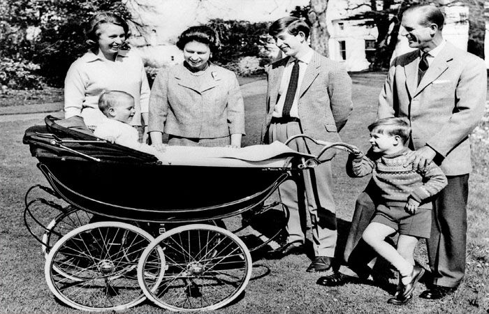 बाईं ओर से पहली रानी की बेटी राजकुमारी ऐनी है। फिर एलिजाबेथ, राजकुमार चार्ल्स, रानी के पति प्रिंस फिलिप और रानी के तीसरे बेटे एंड्रयू और सबसे छोटे बेटे प्रिंस एडवर्ड द्वारा साइकिल में दिखाई देते हैं।