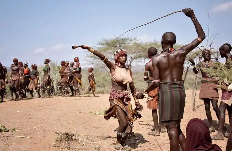 मवेशियों के झुंड के बीच से गुजर रहे युवक की मनपसंद लड़की से शादी हो गई है. उसके लिए, जो महिलाएं शादी करना चाहती हैं, वे अपनी मर्जी से कोड़ों से पीटना पसंद करती हैं। मिली जानकारी के मुताबिक शादी के बाद पुरुषों को महिलाओं को पीटने की इजाजत है.एक महिला दूसरी महिला की पीठ पर घाव दिखाकर गर्व महसूस करती है.