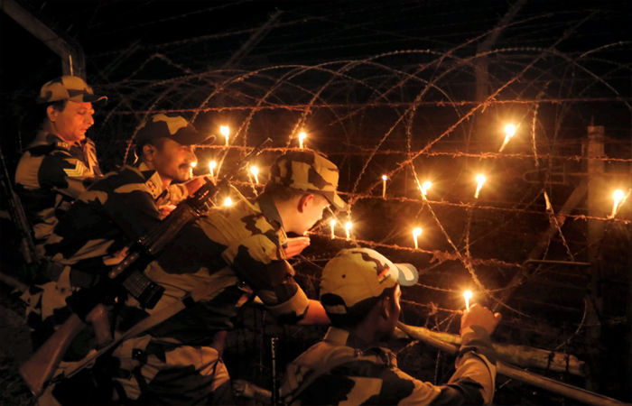बीएसएफ के जवानों ने भारत-बांग्लादेश सीमा पर दीप जलाकर दिवाली मनाई।