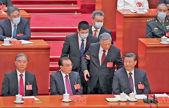 इसी बीच शनिवार को कम्युनिस्ट पार्टी के कांग्रेस के आखिरी दिन एक अहम घटना ने पूरी दुनिया का ध्यान खींचा और इसका वीडियो सोशल मीडिया पर वायरल हो गया. शनिवार को जब कम्युनिस्ट पार्टी की 20वीं कांग्रेस का सत्र चल रहा था, पूर्व राष्ट्रपति हू जिंताओ, जो जुनिपिंग के बगल में बैठे थे, को हाथ से बाहर निकाला गया।