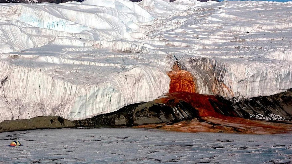दक्षिणी ध्रुव-अंटार्कटिका में एक हिमनद से रक्त की धारा बह रही है। 'टेलर ग्लेशियर' नाम का यह ग्लेशियर ईस्ट अंटार्कटिका के विक्टोरिया लैंड पर स्थित है और दशकों से खून से लथपथ है। कई निडर वैज्ञानिकों ने उस निकास को भी पाया है।
