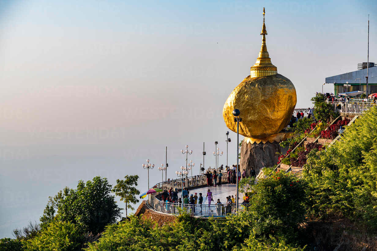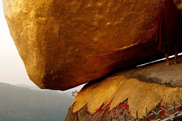 यह सोना नहीं है बल्कि सोने को वापस चढ़ाया गया है और सोने जैसा दिखने के लिए बनाया गया है। एक पत्थर के ऊपर एक और पत्थर है जो एक साथ मजबूती से जुड़ा हुआ है। 1100 मीटर की ऊंचाई पर स्थित गोल्डन रॉक को कायाक्तियो पैगोडा भी कहा जाता है। बौद्ध धर्मस्थल होने के कारण, बहुत से लोग धार्मिक कारणों से कयाक्तियो पगोडा जाते हैं। सैन्य शासन के बोझ तले दबे म्यांमार देश बौद्ध धर्म का एक महत्वपूर्ण केंद्र रहा है।